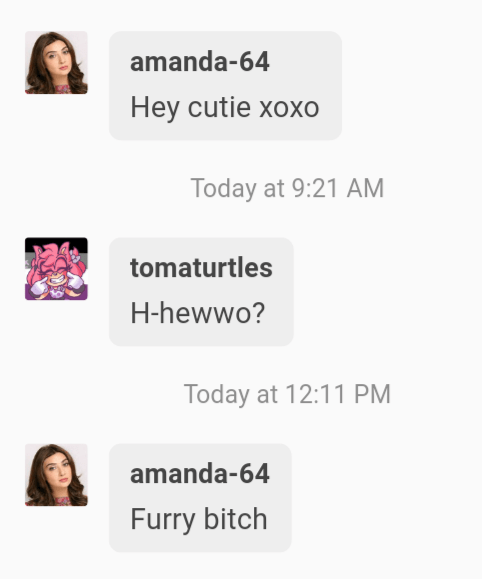 chaosbitches Uncategorized June 29, 2018December 6, 2018 1 Minute tomaturtles: tomaturtles: I can’t believe i’m getting called out by a bot Update: i’m calling the police Share this: Share on X (Opens in new window) X Share on Facebook (Opens in new window) Facebook Like Loading... Related Published by chaosbitches View all posts by chaosbitches Published June 29, 2018December 6, 2018