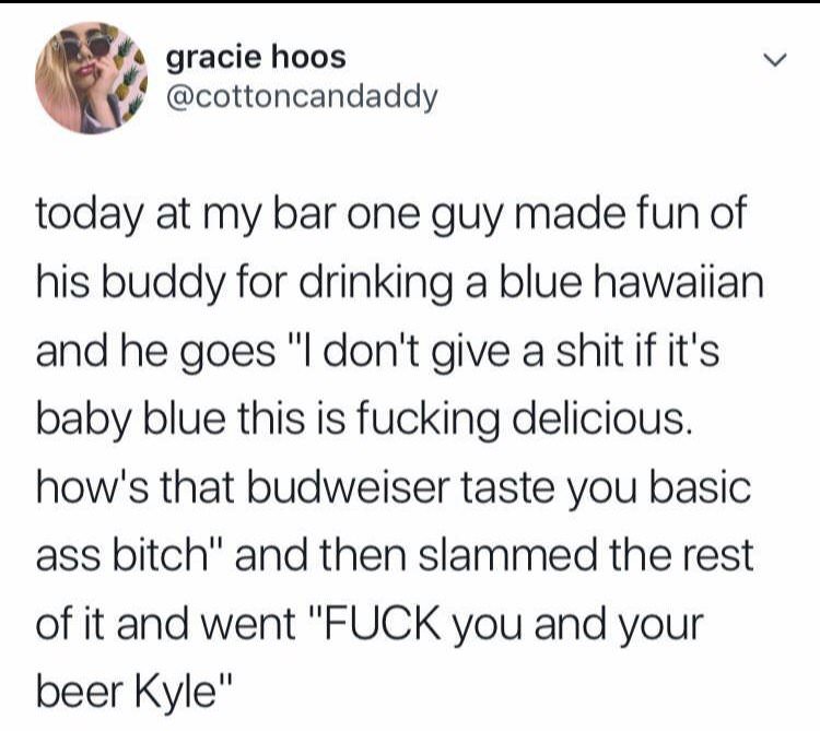 chaosbitches Uncategorized July 4, 2018December 6, 2018 1 Minute whitepeopletwitter: Margaritas aren’t girl drinks they’re drinks for everyone. Share this: Share on X (Opens in new window) X Share on Facebook (Opens in new window) Facebook Like Loading... Related Published by chaosbitches View all posts by chaosbitches Published July 4, 2018December 6, 2018