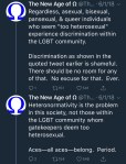 PSA for all y’all asexual exclusionists out there. Asexuality is inherently queer. Deal with it. And while you’re at it support bisexuals, pansexuals, polysexuals, aromantic people, intersex ppl, trans people and non binary people y’all frequently forget us.