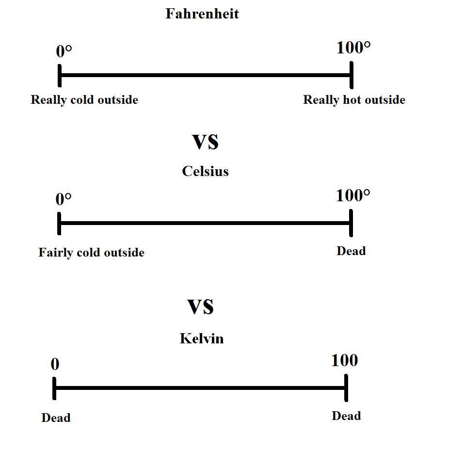 celsius better for small science, kelvin better for big science, fahrenheit better for fuckin daily life. i will defend fahrenheit until i die