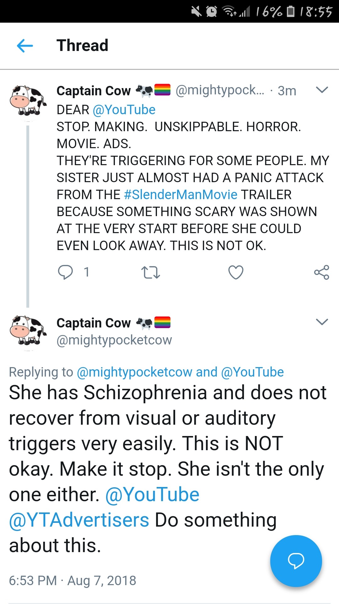 I’ve had it with youtube and its bullshit. Scary movie ads can be really triggering. We all know this. I want youtube to SEE this and DO something. Get famous youtubers on this. Get attention. Please. Make it all stop. Make them skippable. Make the unskippable ones not have scary things. Make youtube safe for people who not just want but NEED it to be.
