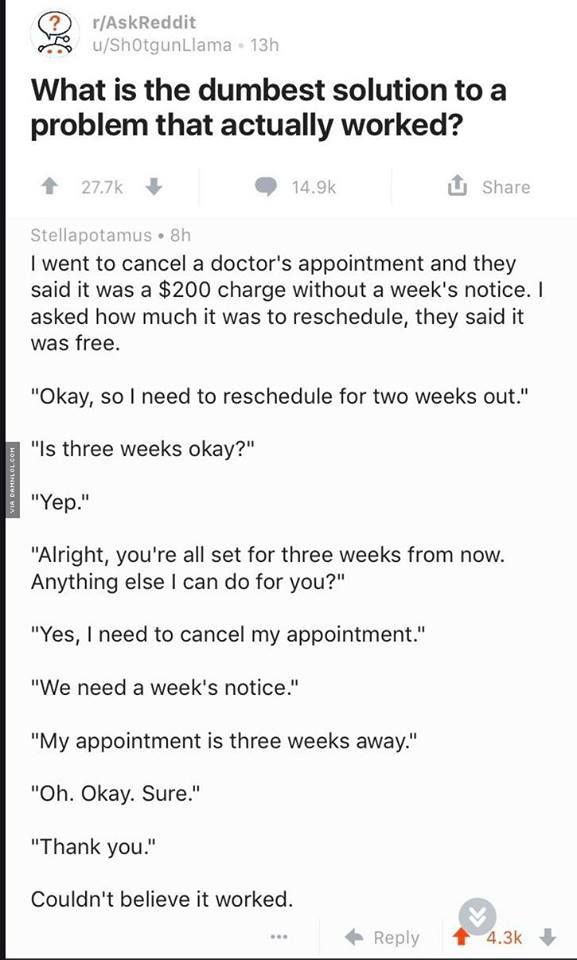 I hung up and said to the original receptionist, “Hi, I have an appointment in five minutes.”
