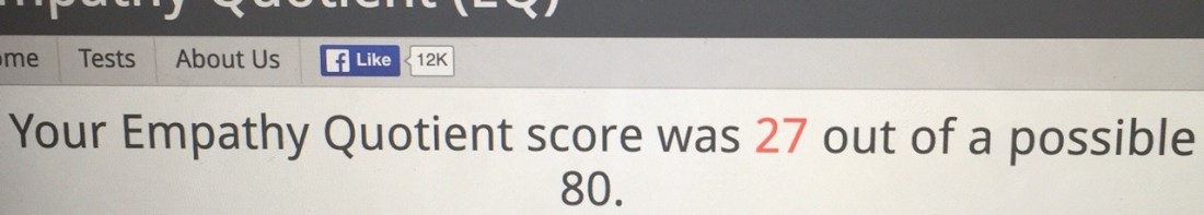 chaosbitches Uncategorized August 27, 2018December 6, 2018 1 Minute threecheersforthedanger-days: nbkangel: exousia-skotos: link?? http://www.psychology-tools.com/empathy-quotient 23… guess it’s an autism thing. Share this: Share on X (Opens in new window) X Share on Facebook (Opens in new window) Facebook Like Loading... Related Published by chaosbitches View all posts by chaosbitches Published August 27, 2018December 6, 2018