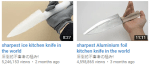 The knife tests at the end of each video and the hardness/sharpness ranking of each absurd knife as compared to the others