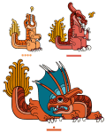 digital drawing of the pokemon charmander, charmeleon and charizard reimagined as glyphs, their pokédex number is on display at the bottom of each pokemon as maya numerals, the pokemon look like lizar