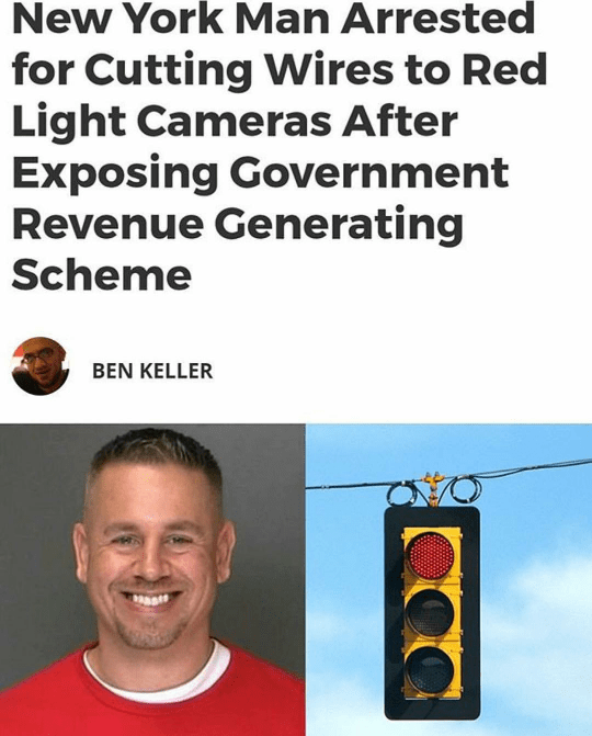 When he cut the camera cords, he reported his deeds to the news -himself,- and then politicians pressured the local police force into arresting him. The local police and sheriff deputies actually SUPPORT him for his actions because the lights have been killing innocent people! During his most recent arrest, one of the Sheriff’s Deputies actually -offered to bail him out-.