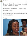 “we didn’t know any better,” the first mate says, staring into the water. “we didn’t know- we didn’t know anything. we didn’t understand why she fought so viciously to guard her treasure. we could not know she protected something a thousand times more precious than the purest gold.”