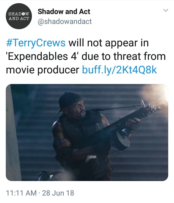 This misses the really powerful piece of the story: Terry Crews was the one who chose not to do the movie. One of the producers told him, essentially, that he could either do the movie and be drop the sexual assault charges, or continue with the trial and have “troubles”. Terry dropped out because he felt standing against abusers was more important than his film career.