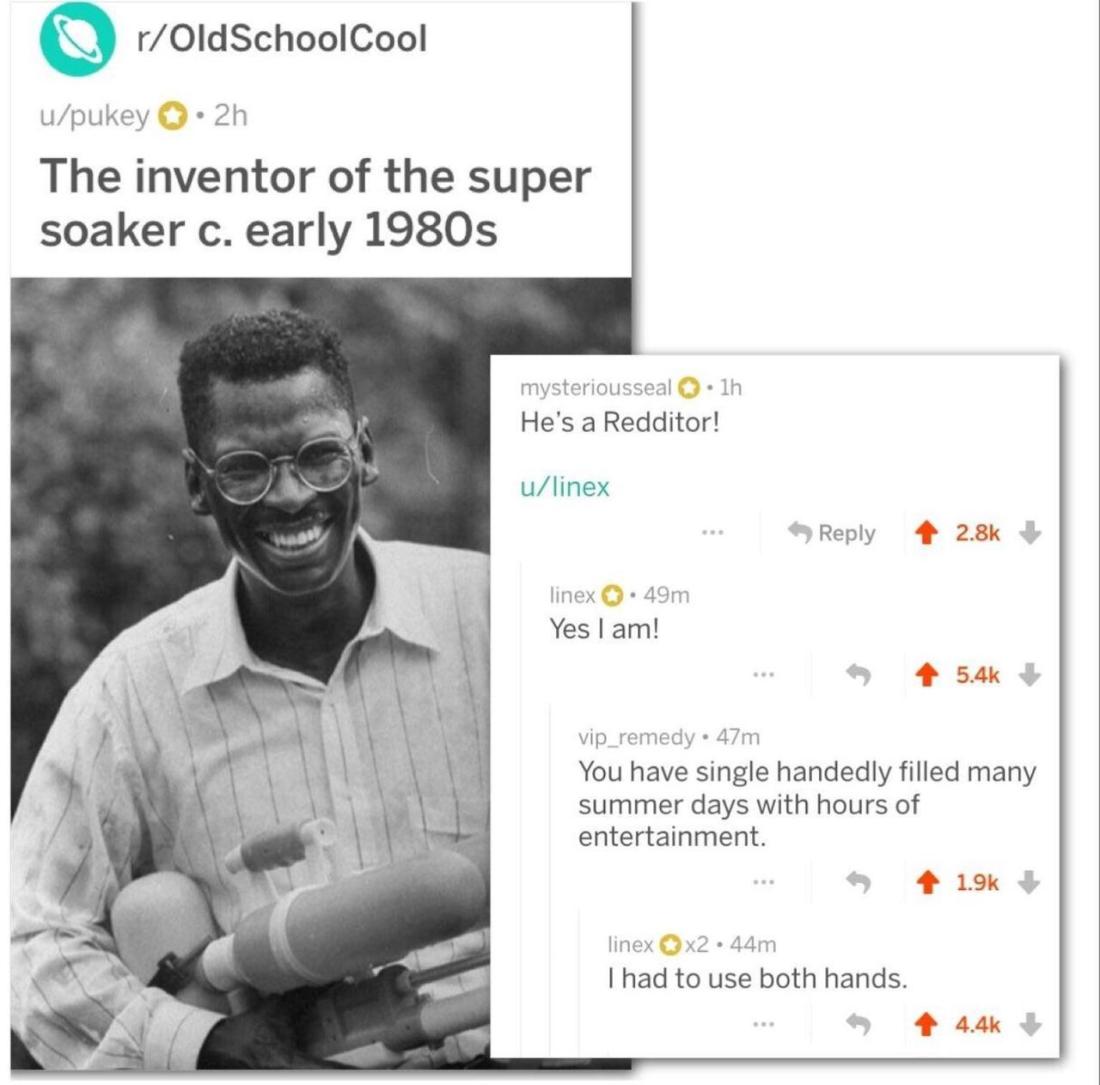 chaosbitches Uncategorized November 26, 2018December 6, 2018 1 Minute bisexualscotty: positive-memes: Wholesome Super soaker inventor! His name is Lonnie Johnson and he used to work at NASA! More from the same thread: Share this: Share on X (Opens in new window) X Share on Facebook (Opens in new window) Facebook Like Loading... Related Published by chaosbitches View all posts by chaosbitches Published November 26, 2018December 6, 2018
