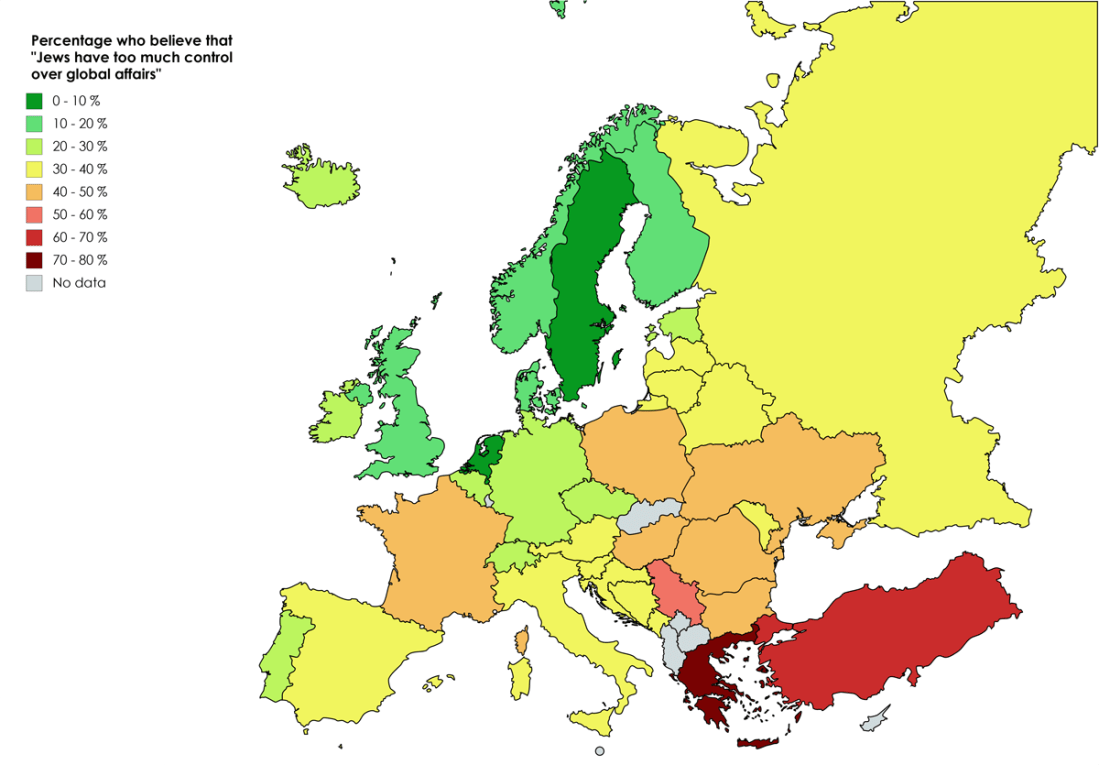 Huh, I’m surprised by this… I’d thought of Scandinavia as being more antisemitic, I guess it’s not as bad as I thought. But Greece?? Greece, what’s going on??